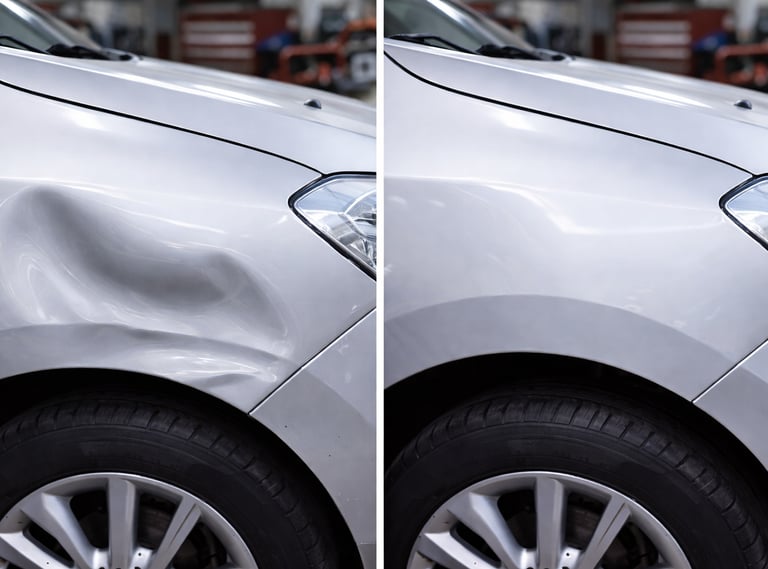Petits travaux de carrosserie réalisés rapidement : rayures légères, éléments abîmés, remise en état avant vente ou restitution de véhicule.